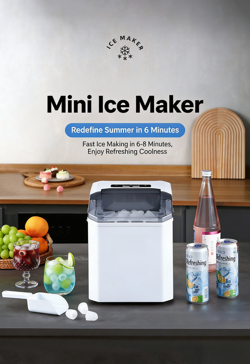 Small Household Ice Maker, Mini Portable, Full-Automatic Intelligent Bullet Ice Maker Máy làm đá mini gia dụng, nhỏ gọn, tự động đầy đủ thông minh, làm đá viên đạn Mesin es mini rumah tangga, portabel, otomatis penuh cerdas, pembuat es peluru